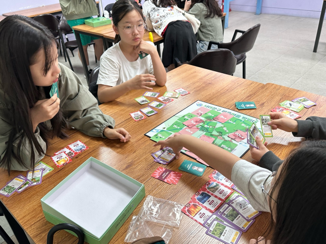 청소년들이 보드게임 `서대문구 에코마을방범대`를 즐기고 있다