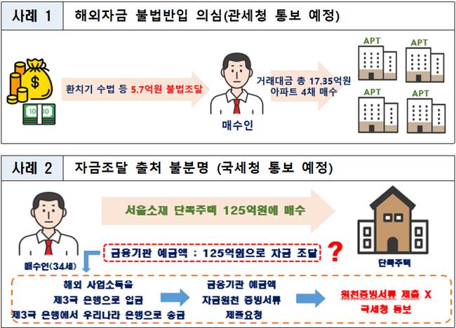 • 해외자금 불법반입·무자격 임대업·편법증여 등 290건 위법 의심…관세청·국세청·경찰청 등 통보