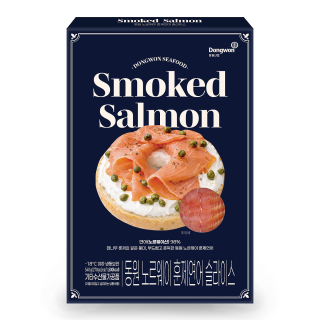 ‘동원 노르웨이 훈제연어 슬라이스’는 국내 최대 수산기업 동원산업이 엄선한 슈페리어 등급(최상급)의 노르웨이산 연어로 만들었다. 첨가물 없이 북유럽식 ACO 블렌딩 훈연 공법만으로 연어만의 풍미와 쫀득한 식감을 구현했다.